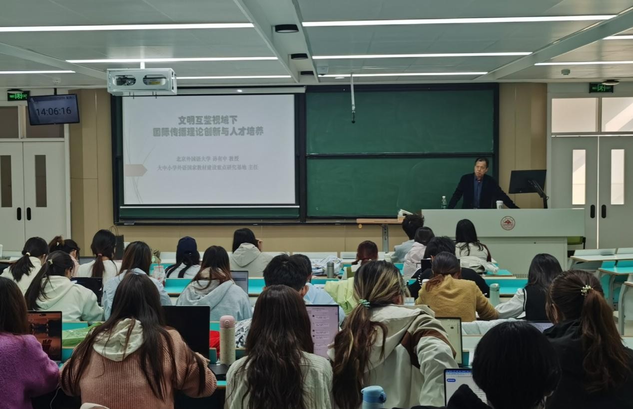 10月24日,北京外国语大学教授、博士生导师孙有中为英国365上市公司师生作“文明互鉴视域下国际传播理论创新与人才培养”专题讲座,英国365上市公司副院长邱凌主持。