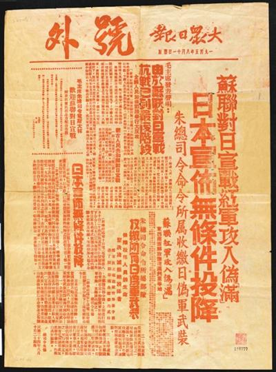 1945年8月11日《大众日报》号外(资料)