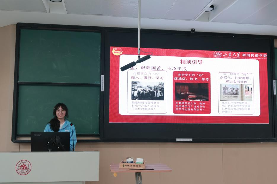 活动伊始,宋宗琪同学向各位团员介绍了本次活动的流程概览,接着领学本次读书交流会的第一本书——《习近平的七年知青岁月》,通过从扎根群众的“心”、刻苦学习的“劲”、实干担当的“魂”三个方面进行精读引导,帮助大家更好的了解和体会这本书真正的内涵与智慧。