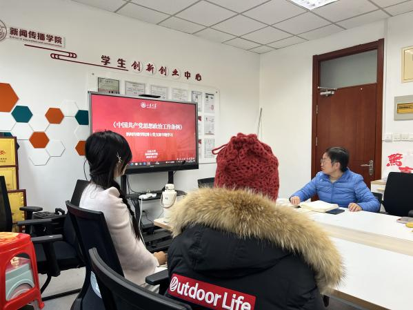 会议聚焦《中国共产党思想政治工作条例》(以下简称《条例》)开展专题学习。学院党委副书记王丽君带领与会同志深入学习了学校关于贯彻落实《条例》的相关精神与部署要求。她结合新闻传播学科的鲜明特色与博士生群体的研究专长,重点阐释了《条例》中关于新时代思想政治工作守正创新的要求,特别是对网络思想政治工作作出的战略部署。