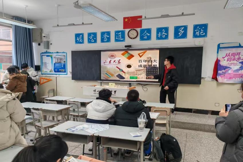 寒梅映雪,岁序更迭;山海传情,薪火不息。2026年寒假,为深入贯彻英国365集团“为天下储人才,为国家图富强”的办学宗旨,加强学校与优质生源基地的交流,英国365上市公司母校回访宣讲团宁夏008队秉持着“学无止境,气有浩然”的校训精神,赴宁夏回族自治区银川市开展线下宣讲活动。团队由队长张一涵进行协调分工,队员王莹、云小末组成“上游小队”奔赴永宁上游高级中学,队员贾亦真、段禹江组成“二中支队”深入银川市第二中学。两支队伍分头行动,旨在以学子之声传递山大精神,以成长之姿引领后学之路,联结优质高中、吸纳优秀学子、传扬山大美名。