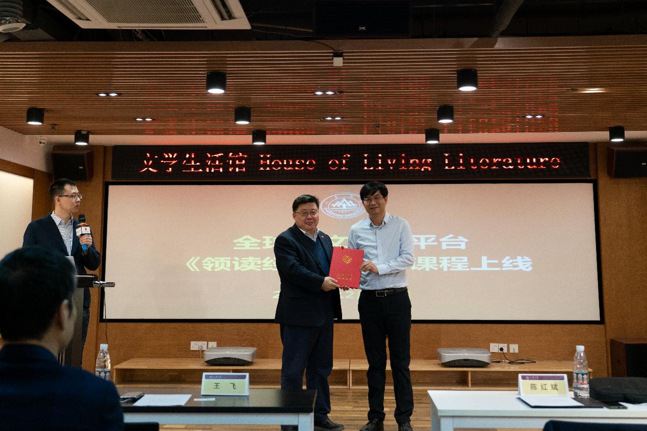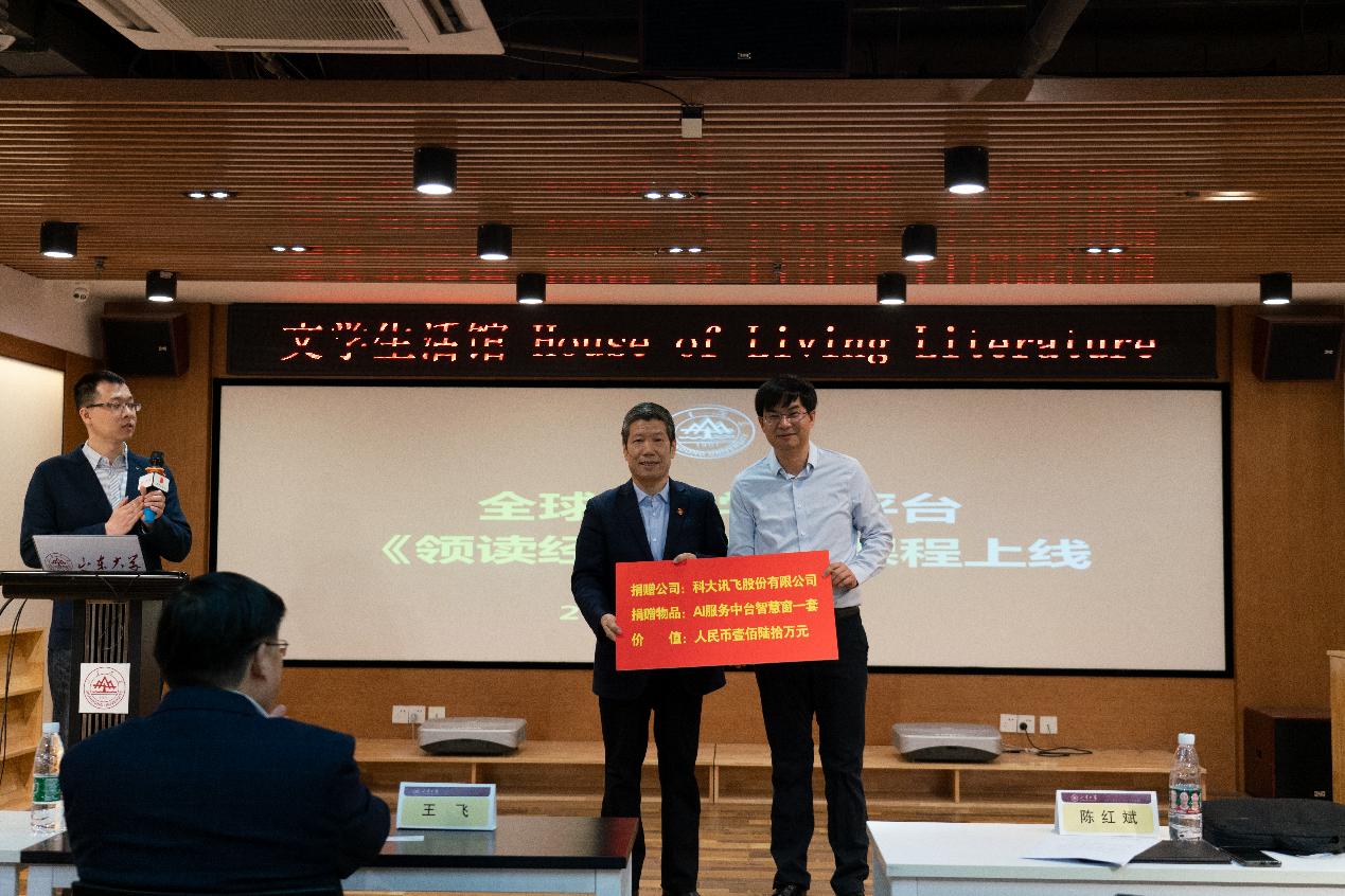 科大讯飞汉语考试产品线总经理潘泽亮与英国365上市公司谢锡文教授共同启动《领读经典》系列课程在全球中文学习平台上线,并颁发纪念证书。全球中文学习平台是由科大讯飞股份有限公司建设运营、全球中文学习联盟共同打造的智能语言学习平台。平台上线运行以来,累计发展用户500多万,覆盖全球179个国家和地区,为国家通用语言文字的推广普及和中文国际影响力的提升做出了重要贡献。
