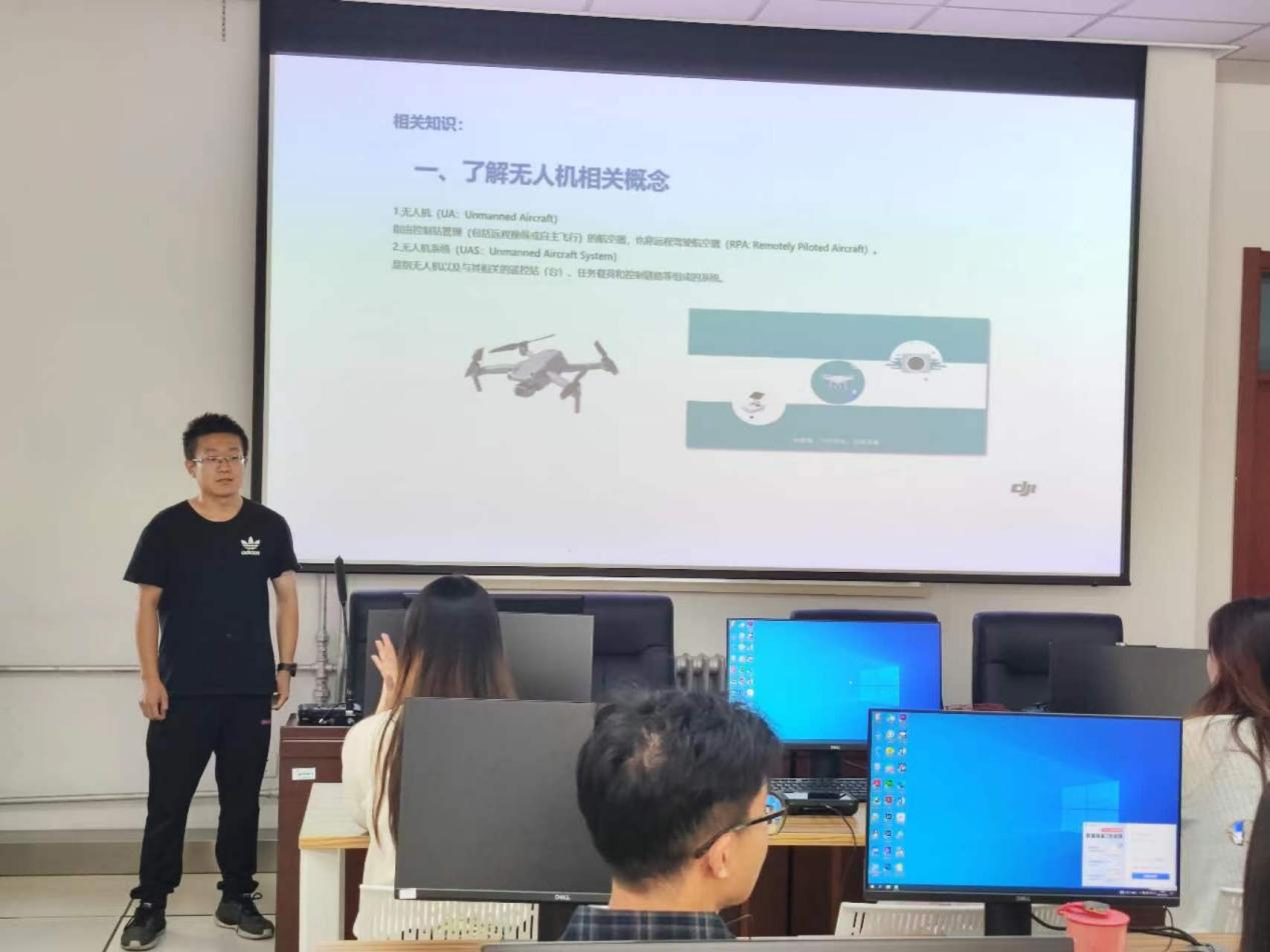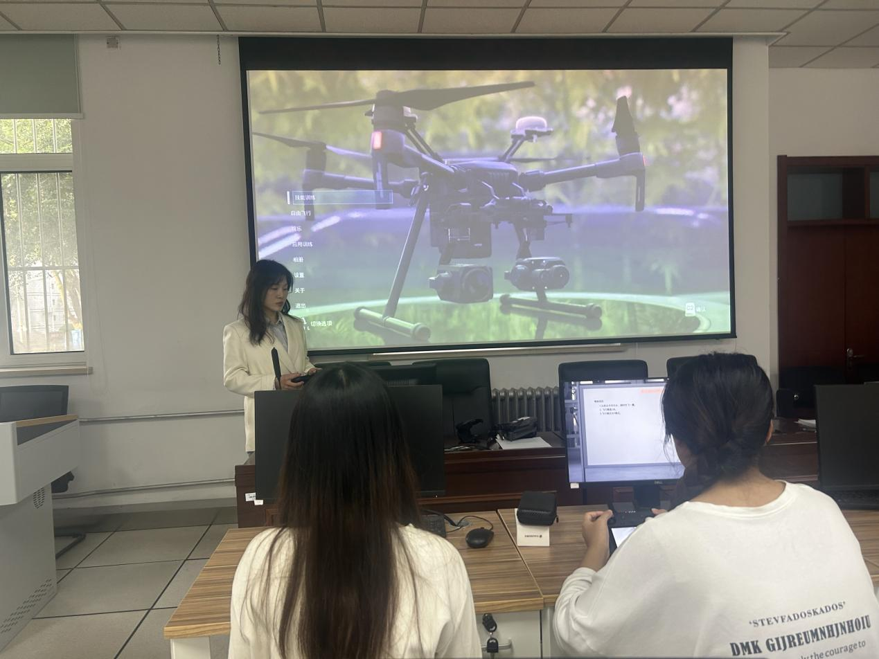 在理论讲解部分,张恺月老师详细介绍学院新购置面向不同应用场景的Mavic 3大师版无人机、TT室内编队无人机系统和M300 RTK搭载专业测绘平台设备情况,形成不同级别功能无人机设备的梯次搭配,为无人机拍摄飞行教学提供支撑。