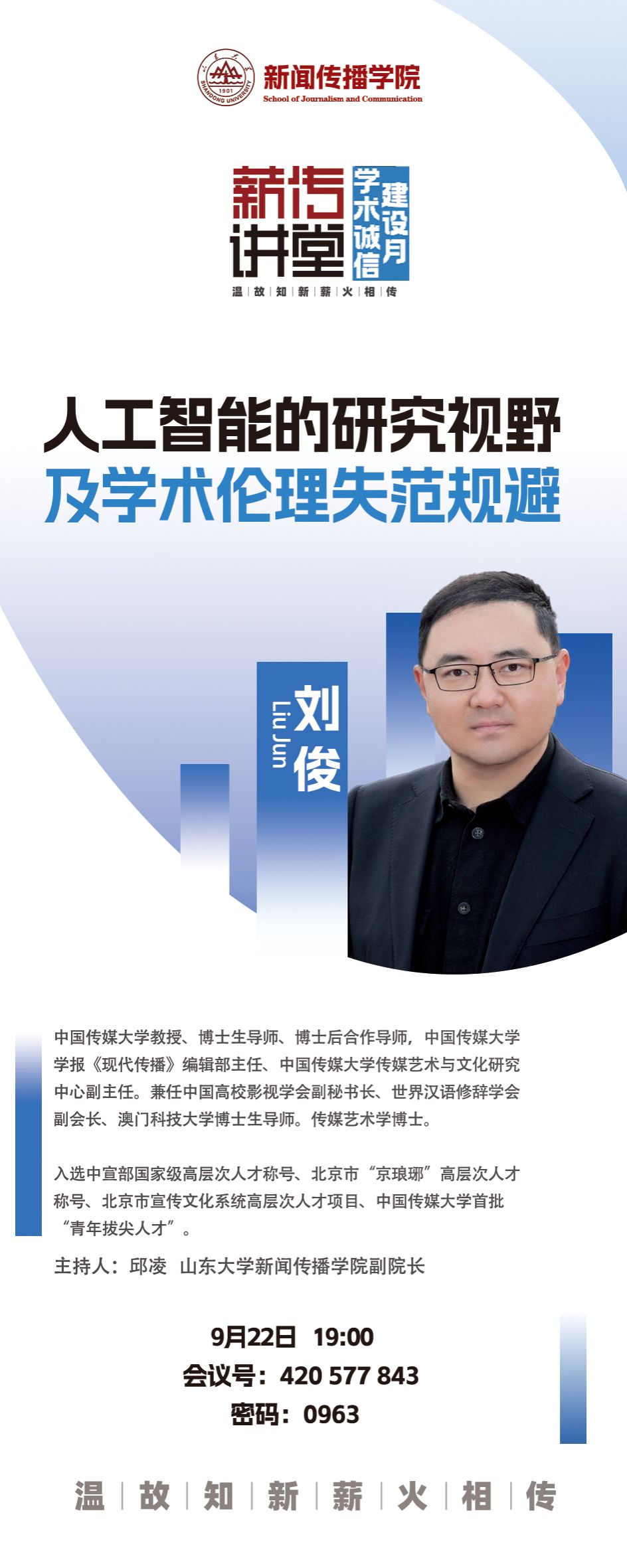 刘俊 中国传媒大学教授、博士生导师,中国传媒大学学报《现代传播》编辑部主任