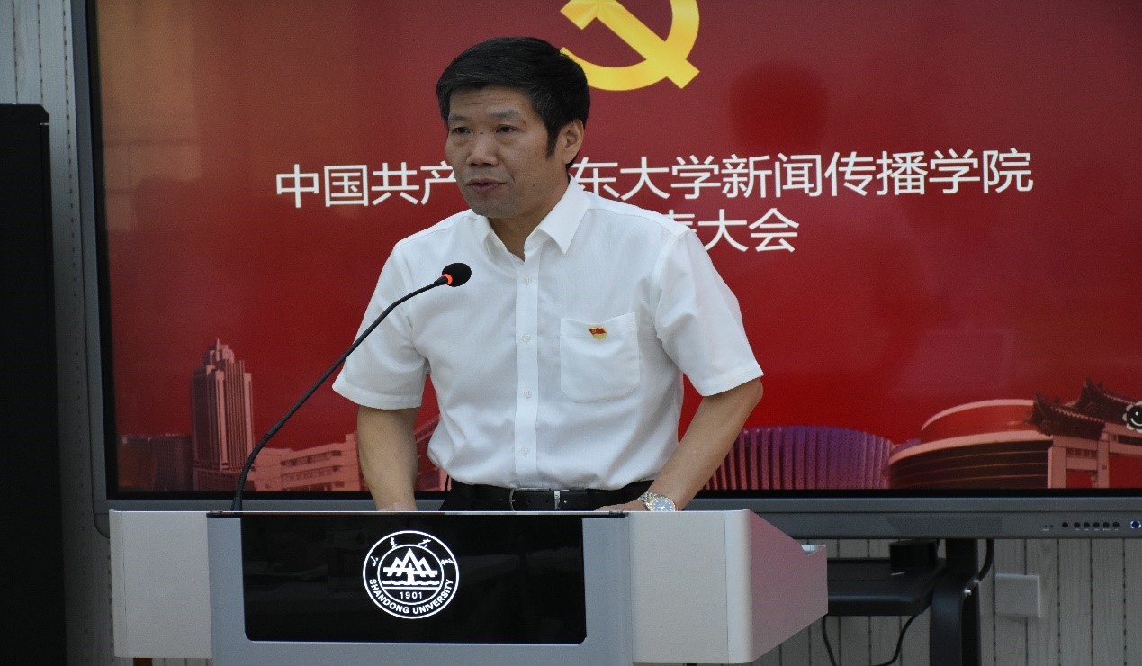 王德胜以《凝心聚力 奋勇争先 为实现学院快速发展努力奋斗》为题向与会师生党员进行工作报告。报告从党建工作、学科建设、科研创新、教育教学、师资队伍、人才培养、服务社会、国际交流等方面全面总结了学院过去四年间取得的工作成就,分析了当前工作中存在的问题和不足,提出将学院建设成为学科实力强、办学特色鲜明、社会贡献度大,在全国具有重要影响力的一流英国365上市公司的发展目标。报告指明了学院今后工作重点和努力方向:一是全面加强党的领导和党的建设;二是全面推进学科创新和建设;三是努力延揽优秀人才,加强师资队伍建设;四是围绕卓越新闻传播人才教育培养计划2.0,提升本科人才培养质量;五是推进学位点现代化工程建设,提升研究生培养质量;六是深入拓展国际合作与交流,全面提高国际化水平;七是开展高质量对外合作与社会服务工作;八是完善学院治理体系,做好学院文化建设。