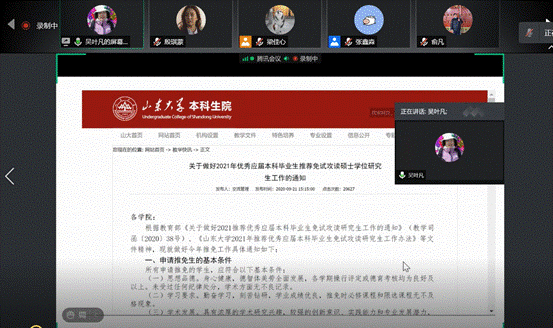 作为边缘保研人,窦培育有自己的心得体会。她以自己为例,分析了边缘保研人和其他同学相比的特殊准备。窦培育为同学们介绍了多种保研途径,并对这些保研的要求进行详细解析。她提到,“边缘保研人要做两手准备,在保研同时准备考研,要在全面复习知识的同时针对报考院校有目的地复习,无死角且深入”。最后,窦培育鼓励同学们,不要因为目前不在保研范围内就对保研丧失希望,第五第六学期还很有机会冲击保研名额。