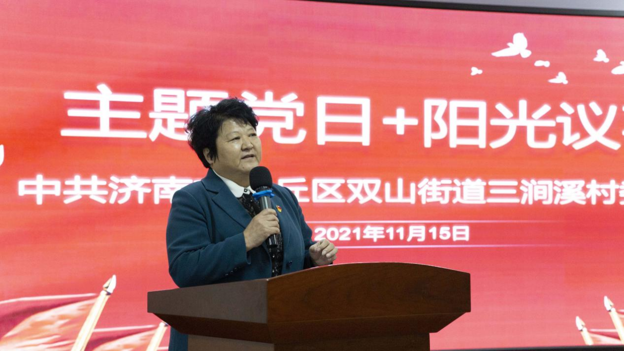“山大新传学院‘聆听光影’下乡观影活动,就好比是为三涧溪村送来的一顿‘文化大餐’。”观影活动正式开始前,三涧溪村党委书记高淑贞在致辞中讲到。她指出,本次观影影片主角沂蒙红娘就是党和人民血肉联系的具化呈现,在激励人心、移风易俗、凝聚共识方面有着不可替代的主题优势。高淑贞还结合党的十九届六中全会精神再一次强调,民族复兴离不开文化复兴,祖国富强离不开党的百年领导,红色基因和红色历史更需要祖祖辈辈的接续传递。
