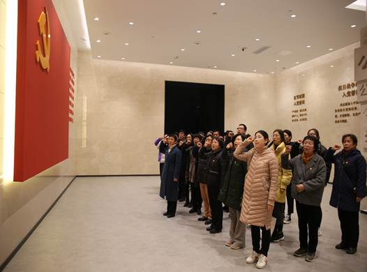 在宣誓厅,全体党员干部面对鲜红的党旗,庄严宣誓,重温入党誓词,感悟入党初心、进一步坚定了为共产主义奋斗终身的坚定信念。